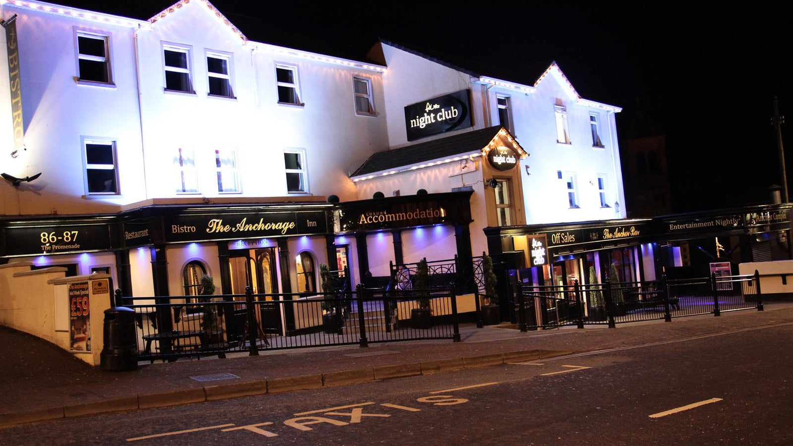 Situated within easy access to Portstewart's picturesque promenade and all of the town's amenities, the Anchor Bar Complex, incorporating the Anchorage Inn, Anchorage Bistro and Aura Nightclub, is known throughout Ireland for its convivial atmosphere, friendliness and of course great Guinness.