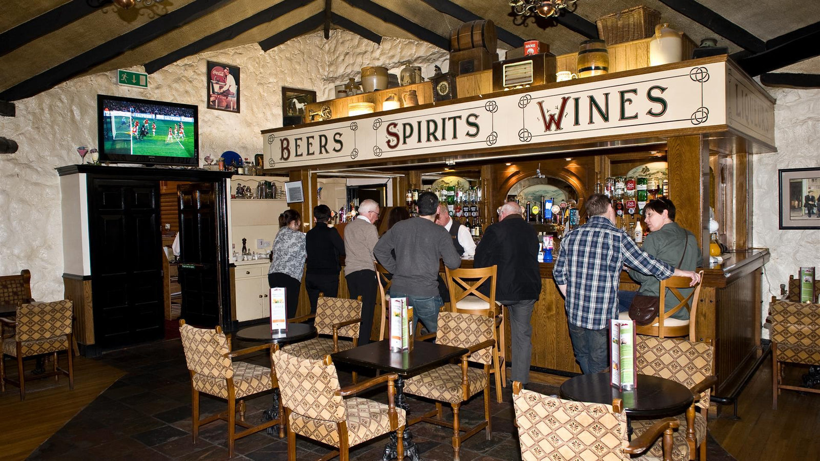 All live sport is covered on one of 6 TVs or a large drop down HD screen.
