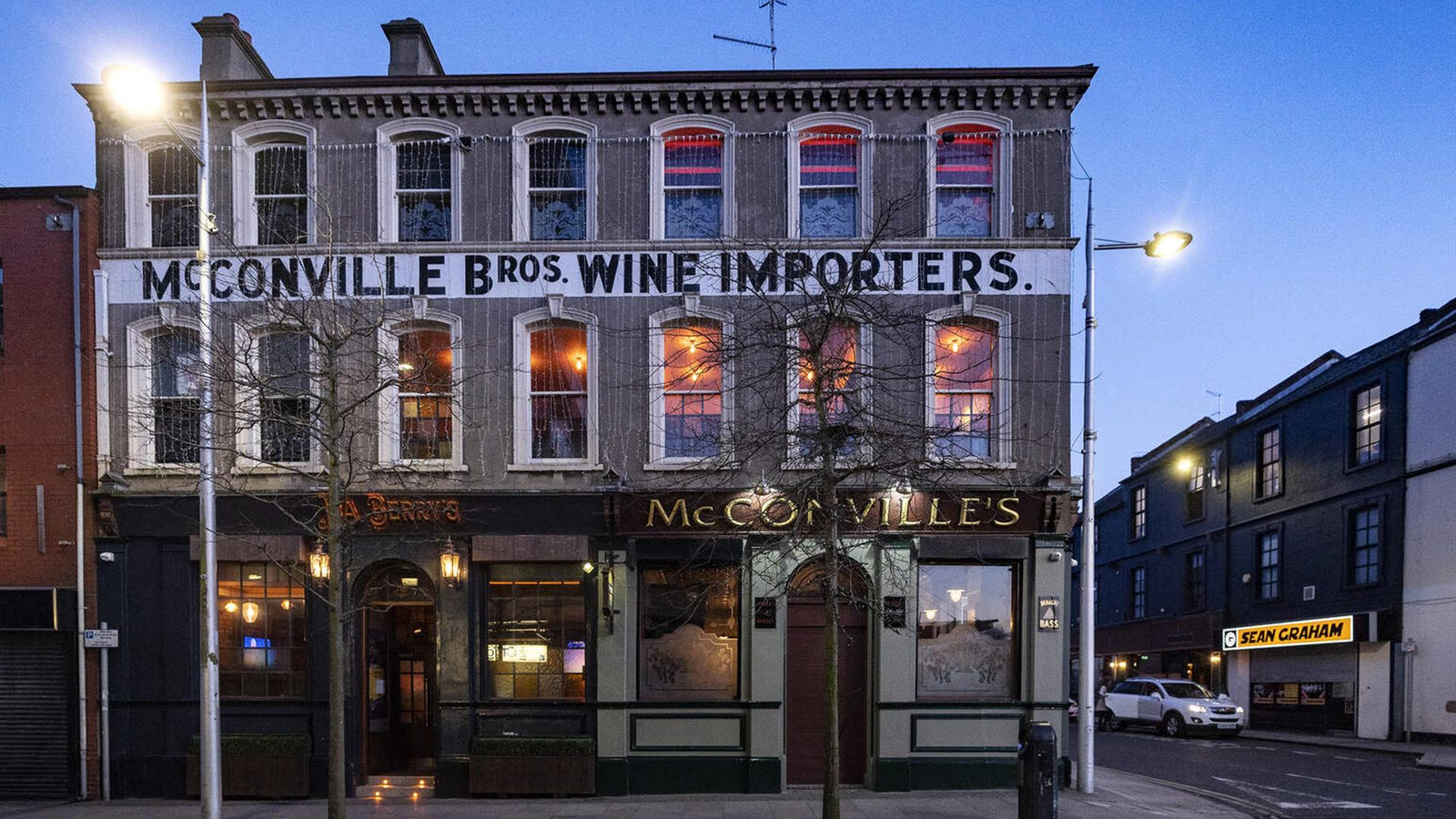 Built in the thriving dock area of Belfast under the gaze of the Albert Clock, McHughs has been restored as an integral piece of Belfast's past for Belfast's future. The new McHughs is a combination of the old McHughs building and it's end of terrace neighbour Du-Barry's.