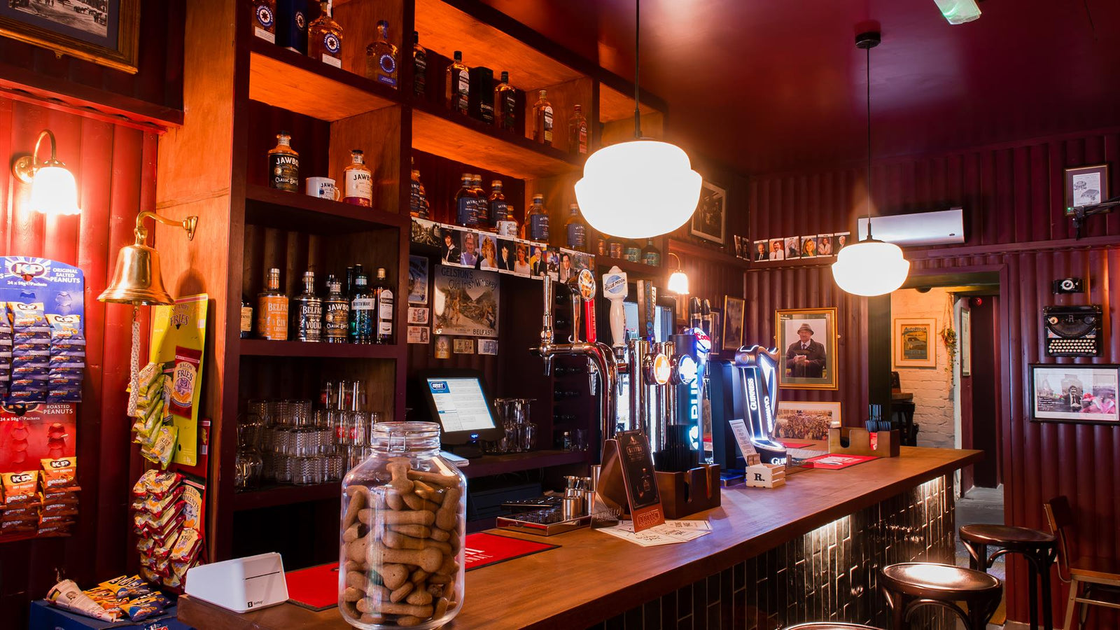 The bar stocks local and speciality gins (Shortcross, Kilbroney), rums, whiskeys and ales (Farmageddon, Hilden Brewery).